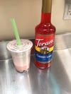 This fruit syrup may cause dairy products to curdle. To avoid curdling in coffee-based beverages, try mixing the coffee and Torani syrup together first before adding the milk. The coffee helps to dilute the acidity of the syrup so that the dairy products will remain creamy. To avoid curdling in crafted sodas, begin by mixing water and syrup together first, then topping with your dairy products.