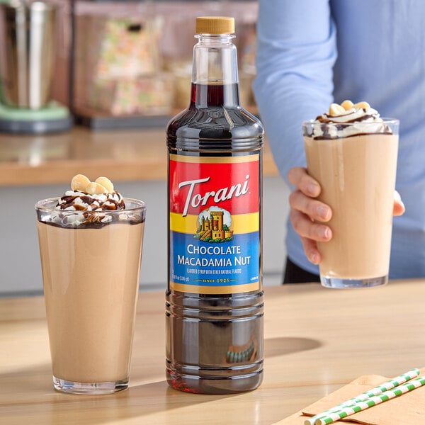Bring all new flavors to your specialty drink menu with this Torani chocolate macadamia nut flavoring syrup! This tempting flavor will complement your beverages without overpowering them or being too sweet, while the user-friendly bottle will be convenient for your busy baristas to use. The syrup is packaged in a convenient plastic bottle which prevents broken glass in the prep area, and it can easily be paired with a compatible pump (sold separately) for quick, efficient service during peak serving hours. This dairy-friendly Torani flavoring syrup is specially formulated to resist curdling in milk and to hold up well under heat, making it the perfect choice for espresso-based drinks, brewed coffee, or tea.