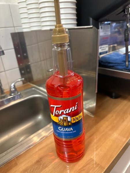 Bring all new flavors to your specialty drink menu with this Torani guava flavoring syrup! This tempting flavor will complement your beverages without overpowering them or being too sweet, while the user-friendly bottle will be convenient for your busy baristas to use. The syrup is packaged in a convenient plastic bottle which prevents broken glass in the prep area, and it can easily be paired with a compatible pump (sold separately) for quick, efficient service during peak serving hours. Use this flavor for frappes, iced coffees, smoothies, and even baking!