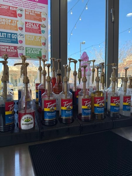 This fruit syrup may cause dairy products to curdle. To avoid curdling in coffee-based beverages, try mixing the coffee and Torani syrup together first before adding the milk. The coffee helps to dilute the acidity of the syrup so that the dairy products will remain creamy. To avoid curdling in crafted sodas, begin by mixing water and syrup together first, then topping with your dairy products.