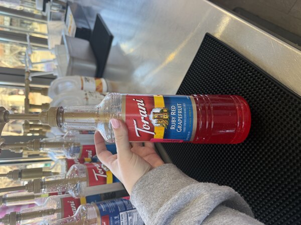 Bring all new flavors to your specialty drink menu with this Torani ruby red grapefruit flavoring syrup! This tempting flavor will complement your beverages without overpowering them or being too sweet, while the user-friendly bottle will be convenient for your busy baristas to use. The syrup is packaged in a convenient plastic bottle which prevents broken glass in the prep-area, and it can easily be paired with a compatible pump (sold separately) for quick, efficient service during peak serving hours. Use this flavor for frappes, iced coffees, smoothies, and even baking!