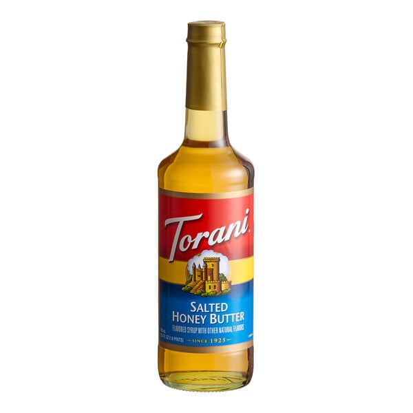 Bring all new flavors to your specialty drink menu with this Torani salted honey butter flavoring syrup. This tempting flavor will complement your beverages without overpowering them or being too sweet, while the user-friendly bottle will be convenient for your busy baristas to use. The syrup is packaged in a glass bottle that has an attractive shelf presence, and it can easily be paired with a compatible pump (sold separately) for quick, efficient service during peak serving hours. Torani flavoring syrups are specially formulated to resist curdling in milk and to hold up well under heat, making them to perfect choice for espresso-based drinks, brewed coffee, or tea. Use this product to flavor drinks like frappes, iced coffees, smoothies, mixed drinks, and desserts!
