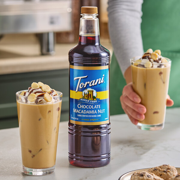 Bring all new flavors to your specialty drink menu with this Torani sugar-free chocolate macadamia nut flavoring syrup! It's sweetened with a sugar-free sweetener, which offers the taste of real sugar without the calories. This tempting flavor will complement your beverages without overpowering them or being too sweet, while the user-friendly bottle will be convenient for your busy baristas to use. The syrup is packaged in a convenient plastic bottle which prevents broken glass in the prep area, and it can easily be paired with a compatible pump (sold separately) for quick, efficient service during peak serving hours. This dairy-friendly Torani flavoring syrup is specially formulated to resist curdling in milk and to hold up well under heat, making it the perfect choice for espresso-based drinks, brewed coffee, or tea.