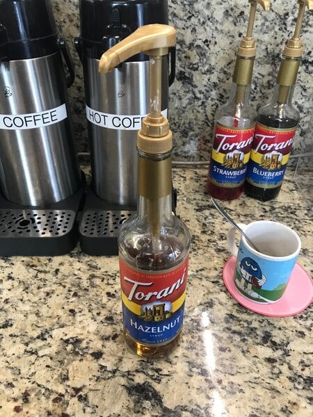 Excellent flavor for our small coffee shop. The corresponding pumps work great and we got a rack to hold multiple options. Wish the stickers came with the bottles instead of the pumps. Overall, very pleased with Torani syrups and will continue to order. Hazelnut is a top 5 choice