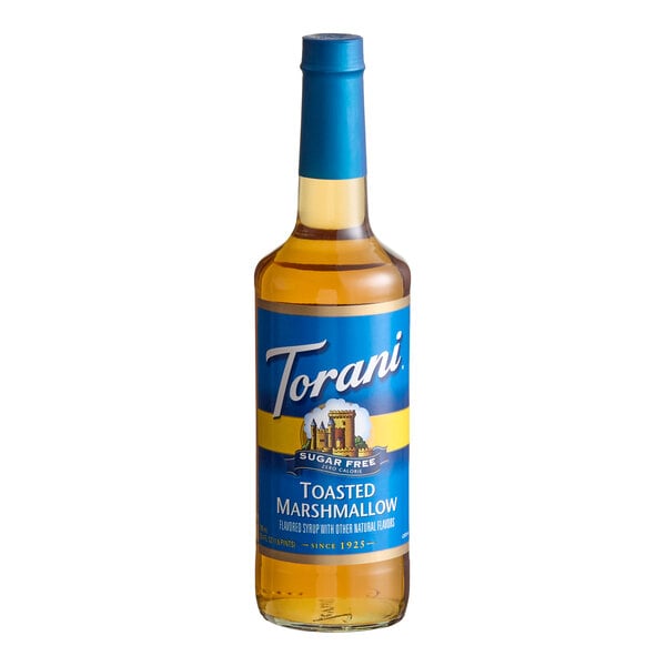 Bring all new flavors to your specialty drink menu with this Torani sugar-free toasted marshmallow flavoring syrup! It's sweetened with a sugar-free sweetener, which offers the taste of real sugar without the calories. This tempting flavor will complement your beverages without overpowering them or being too sweet, while the user-friendly bottle will be convenient for your busy baristas to use. The syrup is packaged in a glass bottle that has an attractive shelf presence, and it can easily be paired with a compatible pump (sold separately) for quick, efficient service during peak serving hours. Torani flavoring syrups are specially formulated to resist curdling in milk and to hold up well under heat, making them the perfect choice for espresso-based drinks, brewed coffee or tea, and more. Use this flavor for frappes, iced coffees, smoothies, and even baking!