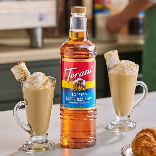 Bring all new flavors to your specialty drink menu with this Torani toasted marshmallow flavoring syrup! This tempting flavor will complement your beverages without overpowering them or being too sweet, while the user-friendly bottle will be convenient for your busy baristas to use. The syrup is packaged in a convenient plastic bottle which prevents broken glass in the prep area, and it can easily be paired with a compatible pump (sold separately) for quick, efficient service during peak serving hours. This dairy-friendly Torani flavoring syrup is specially formulated to resist curdling in milk and to hold up well under heat, making it the perfect choice for espresso-based drinks, brewed coffee, or tea.