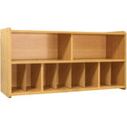 Provide a place to store diapers and other changing supplies with the Tot Mate TM2336R.S3322 shadow elm laminate diaper wall storage. This wall storage is constructed of durable laminate with recycled/reclaimed core materials and an attractive shadow elm finish. It has 8 small cubbies that are perfectly sized to store diapers. A divided upper shelf offers two larger cubbies that are ideal for holding changing supplies such as wipes, creams, and hand sanitizer. It is designed to be directly mounted to the wall conveniently located near the changing table. This item comes unassembled.