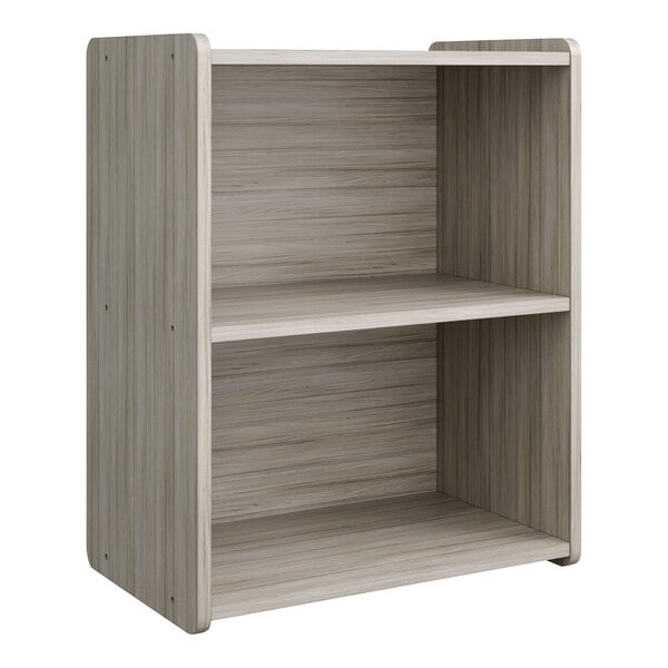 Give preschoolers a place to play and explore their creativity with the Tot Mate TMS301R.S3322 shadow elm laminate preschool play center. This storage shelf is constructed of durable laminate with recycled/reclaimed core materials and an attractive shadow elm finish. This shelf has two levels separated by a full width fixed shelf. It is perfect for storing toys, games, and learning materials organized and out of the way. For even more efficient storage you can pair the shelf with Tot Mate's translucent storage bins (sold separately). The laminate surface is easy to wipe down to keep clean and properly sanitized. This item comes unassembled.