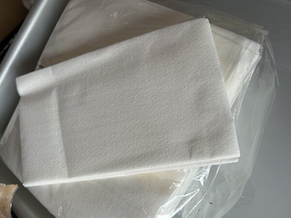 Purchased these by accident - thought they were a different product. Very displeased - Ok for every day but not nice enough for special occasion. Much smaller than the other napkin we like, thinner as well. My two biggest complaints - they are shrink wrapped so tight that the napkins several deep top and bottom are crumpled (and hold the wrinkles after unpacking).... and they are 'stuck' together. You literally have to peel one from the next... and it actually makes a sound. Definitely not what we want our guests to experience on a buffet.