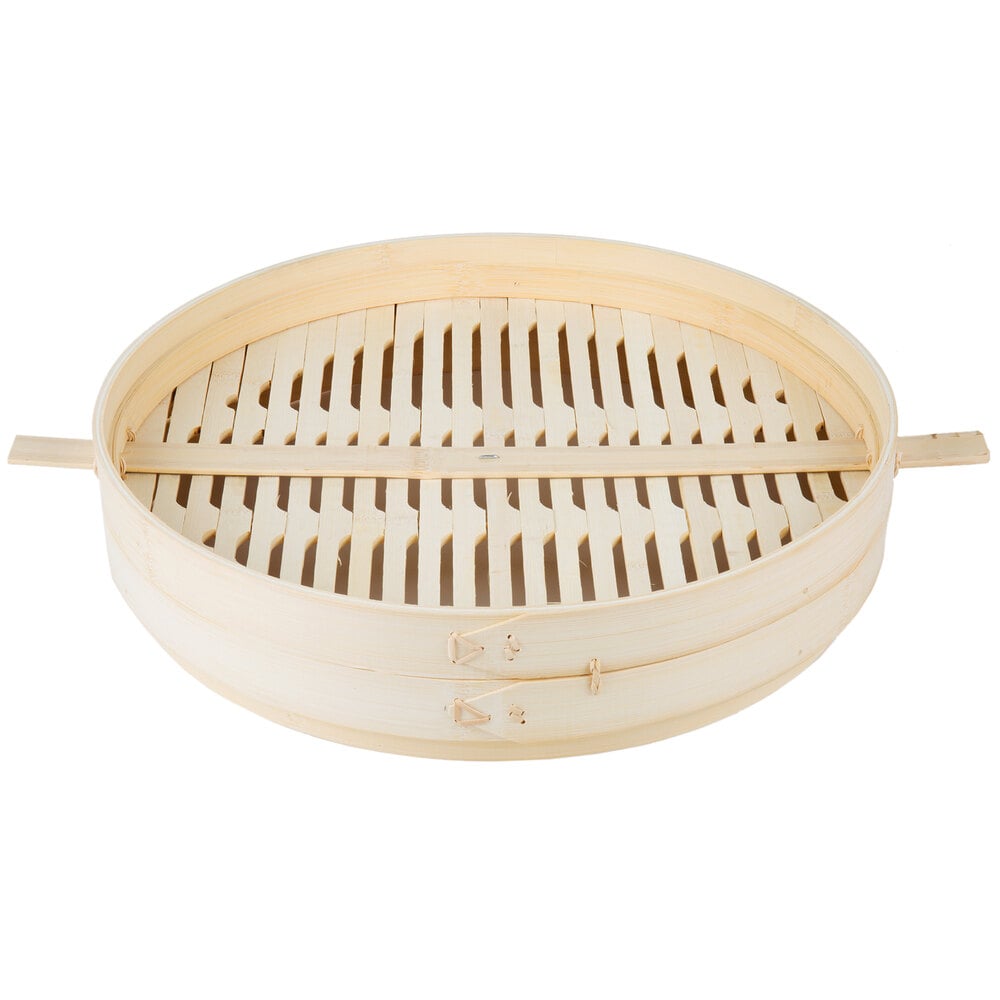 Originating in China and still a staple in Asian cooking today, this bamboo steamer is an extremely useful and versatile kitchen tool for cooking healthier meals, faster. With its 18" diameter, this steamer set is perfect for cooking meat, fish, vegetables, rice, or dim sum to perfection.