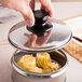 Customers appreciate the durability and easy-to-clean nature of this 4 1/2” steamer cover. It fits perfectly with corresponding steamers, does not warp or dent, and is praised for its space-saving design. Many recommend it for efficiently steaming vegetables, highlighting its value for money and the securely attached handle.
