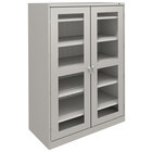 Equip your warehouse, office, or industrial space with this heavy-duty Tennsco light gray jumbo storage cabinet with C-thru doors. This cabinet boasts a durable carbon steel construction with a light gray powder-coated finish for superior durability and sturdiness. The dual swing-out doors feature clear windows that provide excellent visibility, and they ride on heavy-duty hinges for a smooth performance. Reinforced panels in the doors provide further stability to prevent shaking and vibrating upon opening. For maximum security, this unit is also equipped with a three-point locking mechanism. This secure locking mechanism is keyed-alike, so the same key can be conveniently used across all keyed-alike units.