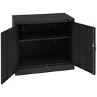 This 24" x 36" x 36" cabinet features 2 openings and 1 adjustable shelf, giving you space to store smaller items. The shelf has a 200 lb. capacity and can easily be adjusted in 2" increments without using any tools. Integrated shelf support tabs secure the shelf without clips or added parts. Additionally, the base of the cabinet is raised, protecting the contents from potential harmful cleaning chemicals. This unit ships unassembled; assembly is required. The tool needed for assembly is provided with shipment.