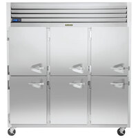 This Traulsen G20012-032 52" two section solid door reach-in refrigerator utilizes microprocessor controls and 2" of foamed in place insulation to provide outstanding temperature preservation and performance! Each refrigerator features a durable stainless steel front and doors, with anodized aluminum sides and interior construction. The refrigerator features right hinged doors on both sections.
