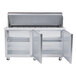 For added convenience, its insulated lift-up pan cover is removable for easier use and cleaning, while its 8" deep, full length cutting board gives you plenty of space to prep signature salads and sandwiches. Additionally, 18.2 cu. ft. of interior storage space behind the right hinged, self-closing doors lets you keep your most popular ingredients close at hand. Four adjustable, powder-coated steel shelves are also included to help you stay organized.