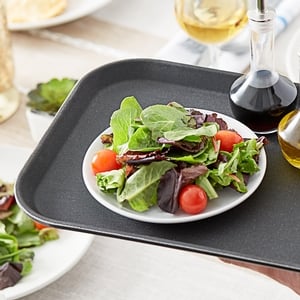This tray has raised edges and a non-skid surface that keeps dishes or glassware firmly in place. This feature also prevents items from sliding off the tray, which results in fewer spills and messes, not to mention reduced replacement costs!