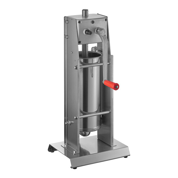 With a reliable, water-tight stainless steel cylinder capable of holding up to 15 lb. / 7 kg of meat, this stuffer is perfect for your large commercial kitchen. Its vertical design will take up less counter space, helping you keep your kitchen clean, organized, and spacious enough for all of your equipment. Made of durable stainless steel, this stuffer adds form and function to your establishment's kitchen. Its sturdy build makes it capable of withstanding heavy use, while its all-stainless steel finish adds a simple, sleek design.