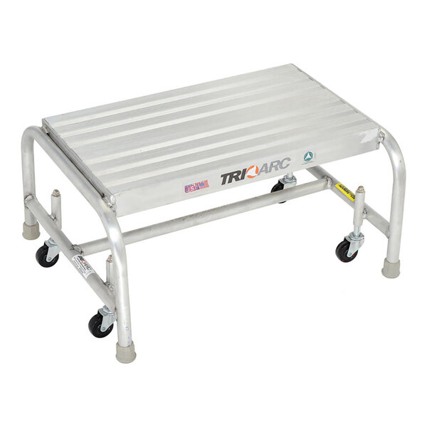 Tri-Arc 1-Step Aluminum Mobile Step Stool with Ribbed Tread, 24" Wide Steps, and 14" Deep Top Step WLAR001244 - 350 lb. Capacity
