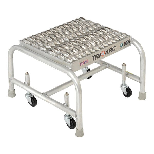 Tri-Arc 1-Step Aluminum Mobile Step Stool with Serrated Tread, 16" Wide Steps, and 14" Deep Top Step WLAR001165 - 350 lb. Capacity