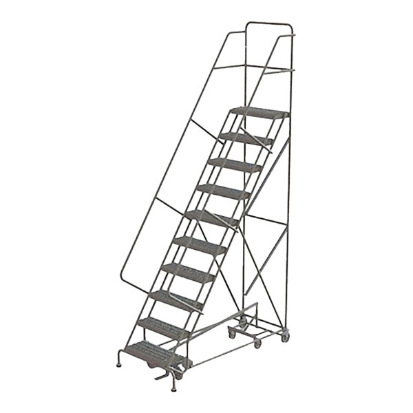 Tri-Arc 10-Step All-Direction 50-Degree Slope Rolling Safety Ladder with Serrated Tread and 24" Step Width KDAD110242 - 450 lb. Capacity