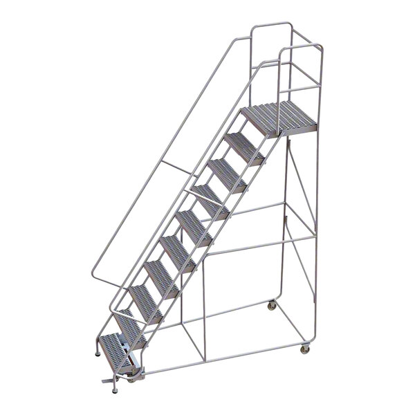 Tri-Arc 10-Step Aluminum Rolling Safety Ladder with Serrated Tread, 24" Wide Steps, and 21" Deep Top Step WLAR110245-D4 - 450 lb. Capacity