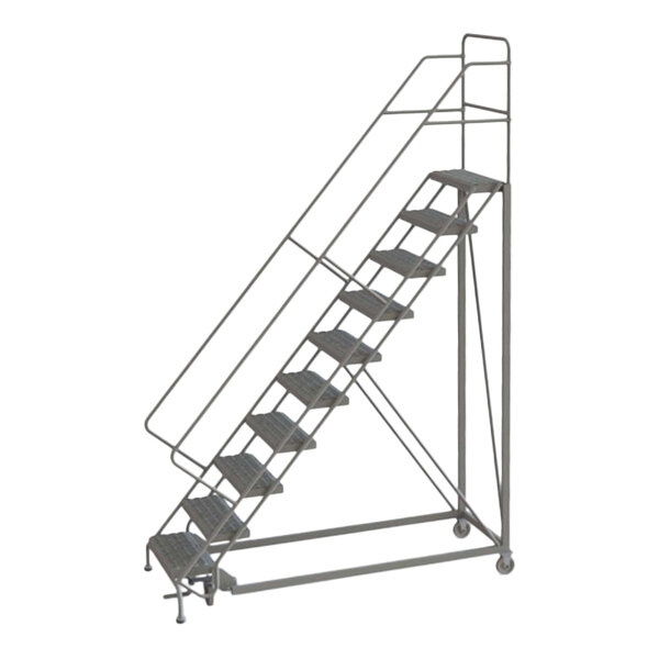 Tri-Arc 10-Step Easy Climb 50-Degree Slope Rolling Safety Ladder with Perforated Tread and 24" Step Width KDEC110246 - 450 lb. Capacity