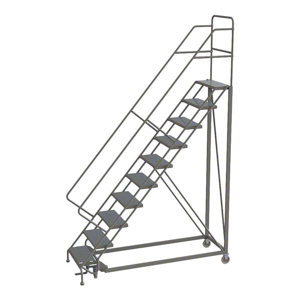 Tri-Arc 10-Step Heavy-Duty 50-Degree Slope Rolling Safety Ladder with Perforated Tread and 24" Wide Steps KDHS110246 - 600 lb. Capacity