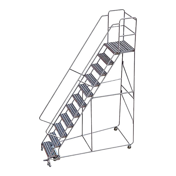 Tri-Arc 11-Step Aluminum Rolling Safety Ladder with Ribbed Tread, 24" Wide Steps, and 21" Deep Top Step WLAR111244-D4 - 450 lb. Capacity