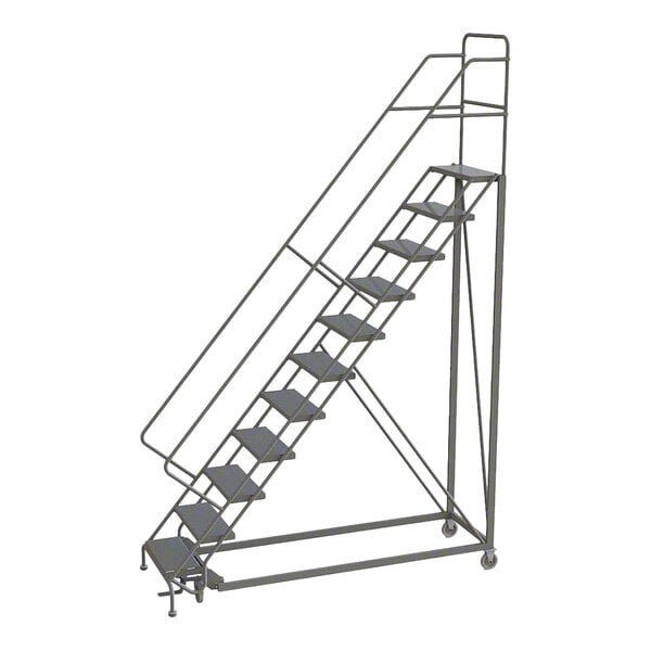 Tri-Arc 11-Step Heavy-Duty 50-Degree Slope Rolling Safety Ladder with Perforated Tread and 24" Wide Steps KDHS111246 - 600 lb. Capacity