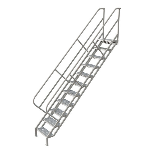 Tri-Arc 11-Step Industrial Access Stairway Ladder with Perforated Tread and 24" Wide Steps WISS111246 - 450 lb. Capacity