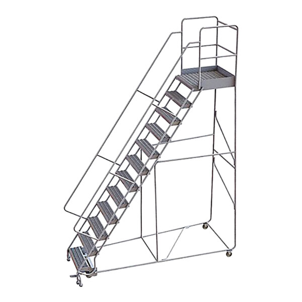 Tri-Arc 12-Step Aluminum Rolling Safety Ladder with Serrated Tread, 24" Wide Steps, and 14" Deep Top Step WLAR112245 - 450 lb. Capacity