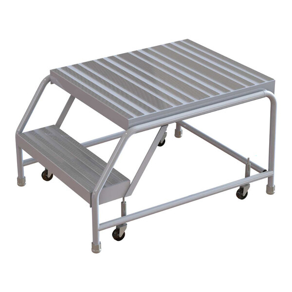 Tri-Arc 2-Step Aluminum Mobile Step Stool with Ribbed Tread, 16" Wide Steps, and 21" Deep Top Step WLAR002164-D4 - 350 lb. Capacity