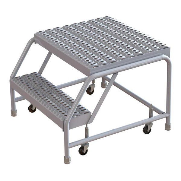Tri-Arc 2-Step Aluminum Mobile Step Stool with Serrated Tread, 16" Wide Steps, and 21" Deep Top Step WLAR002165-D4 - 350 lb. Capacity