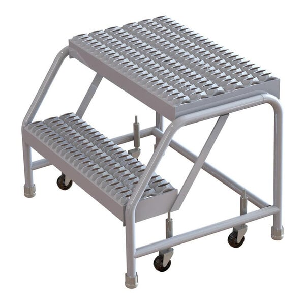 Tri-Arc 2-Step Aluminum Mobile Step Stool with Serrated Tread, 24" Wide Steps, and 14" Deep Top Step WLAR002245 - 350 lb. Capacity