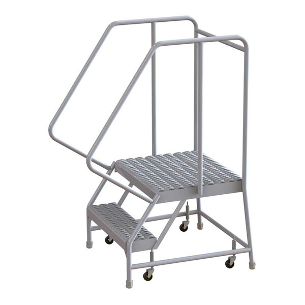 Tri-Arc 2-Step Aluminum Rolling Safety Ladder with Serrated Tread, 16" Wide Steps, and 21" Deep Top Step WLAR102165-D4 - 350 lb. Capacity