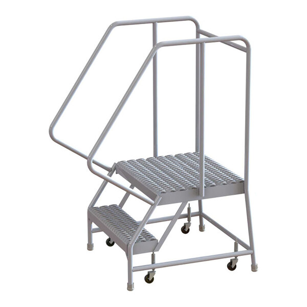 Tri-Arc 2-Step Aluminum Rolling Safety Ladder with Serrated Tread, 24" Wide Steps, and 21" Deep Top Step WLAR102245-D4 - 350 lb. Capacity