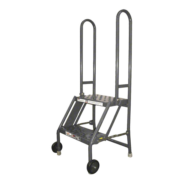 Tri-Arc 2-Step Folding Mobile Step Stand with Perforated Tread and 16" Wide Steps KDMF102166 - 300 lb. Capacity