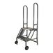 Equip your large commercial space or industrial facility with this Tri-Arc folding mobile step stand! Built with mobility and durability in mind, this ladder's rigid steel frame boasts rugged 1 1/16" tubing and has a weight capacity of 300 lb. The frame is finished with a sleek gray powder coating to ensure a resilient, long-lasting surface that is highly resistant to scratching, water and chemical corrosion, and weathering. The 22" high handrails and 56-degree climbing slope facilitate a safe ascent.