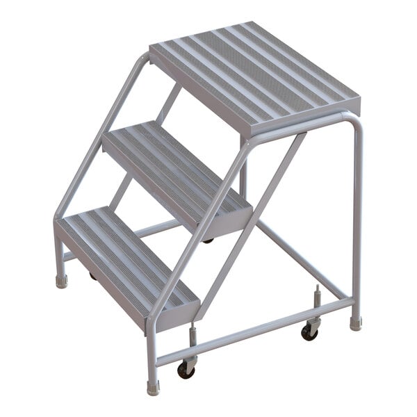 Tri-Arc 3-Step Aluminum Mobile Step Stool with Ribbed Tread, 24" Wide Steps, and 14" Deep Top Step WLAR003244 - 350 lb. Capacity