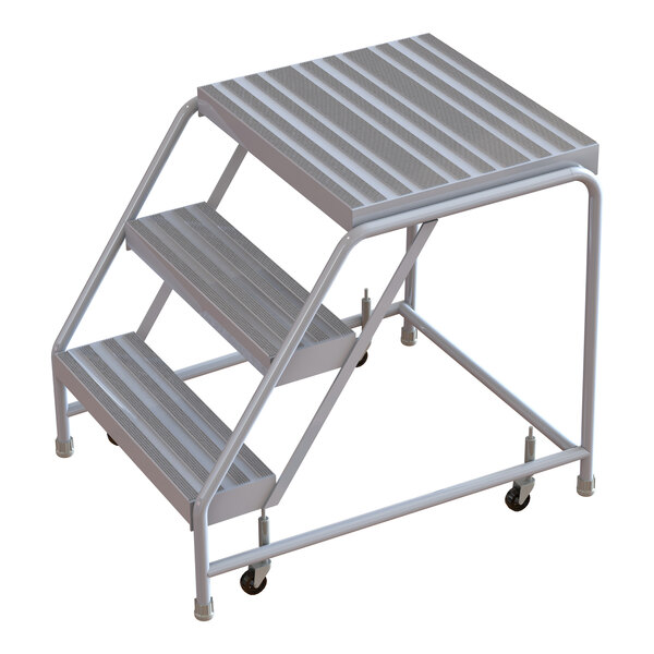 Tri-Arc 3-Step Aluminum Mobile Step Stool with Ribbed Tread, 24" Wide Steps, and 21" Deep Top Step WLAR003244-D4 - 350 lb. Capacity