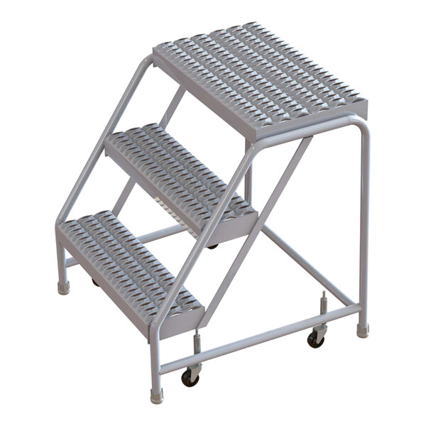 Tri-Arc 3-Step Aluminum Mobile Step Stool with Serrated Tread, 16" Wide Steps, and 14" Deep Top Step WLAR003165 - 350 lb. Capacity