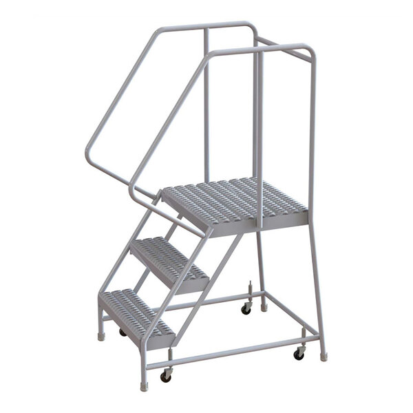 Tri-Arc 3-Step Aluminum Rolling Safety Ladder with Serrated Tread, 16" Wide Steps, and 21" Deep Top Step WLAR103165-D4 - 350 lb. Capacity