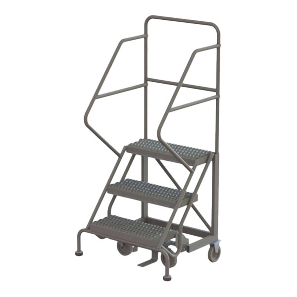 Tri-Arc 3-Step Easy Climb 50-Degree Slope Rolling Safety Ladder with Serrated Tread and 24" Step Width KDEC103242 - 450 lb. Capacity