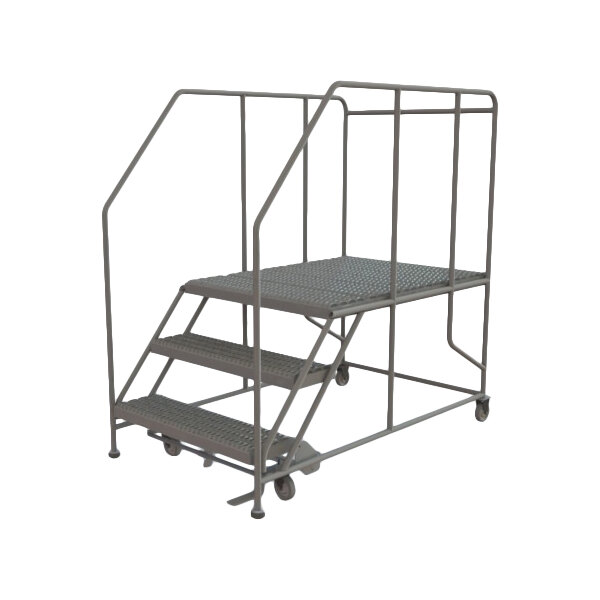 Tri-Arc 36" x 47" 3-Step Steel Mobile Work Platform with Handrails WLWP133648SL - 800 lb. Capacity