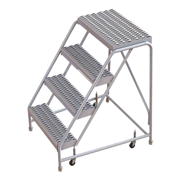 Tri-Arc 4-Step Aluminum Mobile Step Stool with Serrated Tread, 16" Wide Steps, and 14" Deep Top Step WLAR004165 - 350 lb. Capacity