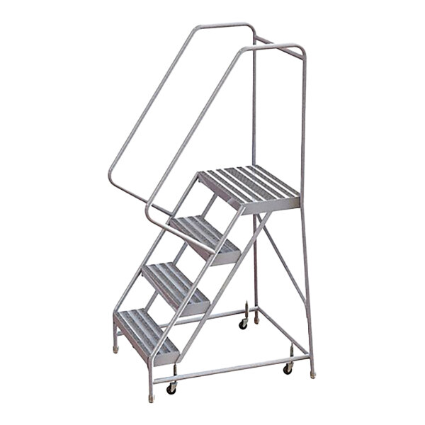 Tri-Arc 4-Step Aluminum Rolling Safety Ladder with Ribbed Tread, 16" Wide Steps, and 14" Deep Top Step WLAR104164 - 350 lb. Capacity
