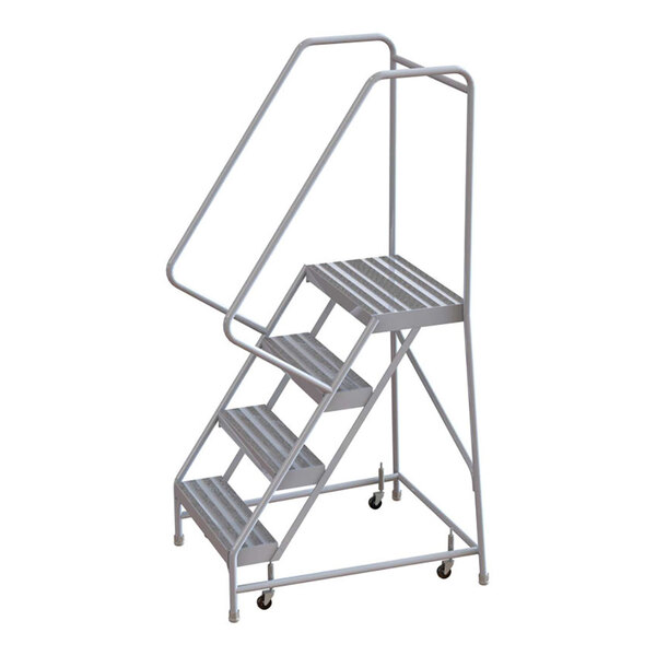 Tri-Arc 4-Step Aluminum Rolling Safety Ladder with Ribbed Tread, 24" Wide Steps, and 14" Deep Top Step WLAR104244 - 350 lb. Capacity