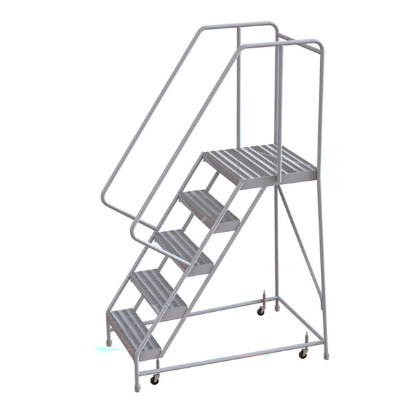 Tri-Arc 5-Step Aluminum Rolling Safety Ladder with Ribbed Tread, 16" Wide Steps, and 21" Deep Top Step WLAR105164-D4 - 350 lb. Capacity