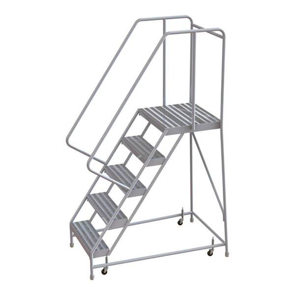 Tri-Arc 5-Step Aluminum Rolling Safety Ladder with Ribbed Tread, 24" Wide Steps, and 21" Deep Top Step WLAR105244-D4 - 350 lb. Capacity