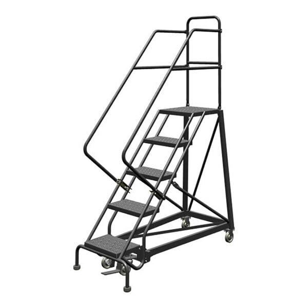 Tri-Arc 5-Step Easy Climb 50-Degree Slope Rolling Safety Ladder with Perforated Tread and 16" Step Width KDEC105166 - 450 lb. Capacity